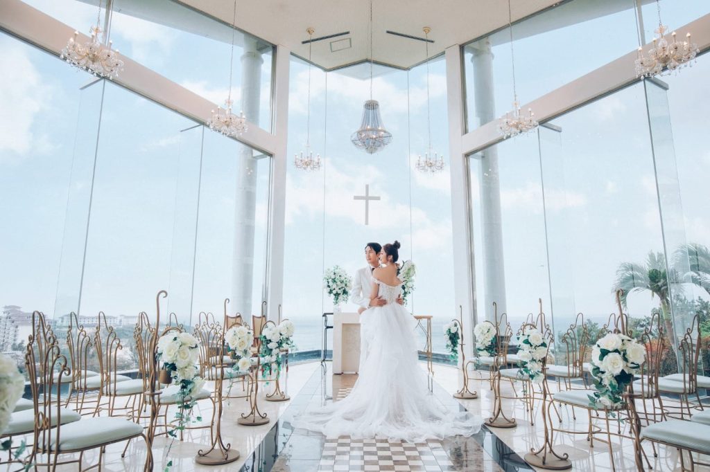 在遼闊的大海的祝福採光之下,穿過莊嚴的門扉,象徵兩人踏出嶄新的一步。面向大自然,猶如被展開的雙手包裹著一般,大理石製的 VIRGIN ROAD 溫柔的指引著新郎與新娘。在散發純潔光輝的此地立下永遠的誓言,滿溢著像這片天空般不會退色的感動,向天空寄託一切思緒,就從這裡製作您的美好婚禮回憶吧。